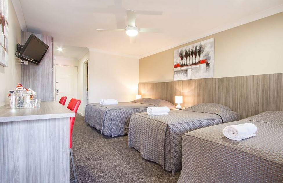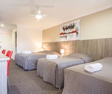 Our Deluxe Family Rooms are a great budget choice for workers or families. These rooms are flexible with a Queen bed and 2 single beds, packed with amenities.